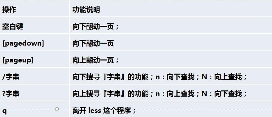 less指令用来分屏查看文件内容,它的功能与more指令类似,但是比more指令更加强大,支持各种显示终端。less指令在显示文件内容时,并不是一次将整个文件加载之后才显示的,而是根据显示需要加载内容,对于显示大型文件具有较高的效率